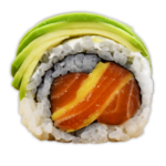 łosoś pieczony, serek Philadelphia, mango, avocado, omlet tamago, sos MATO kabayaki, 8szt.